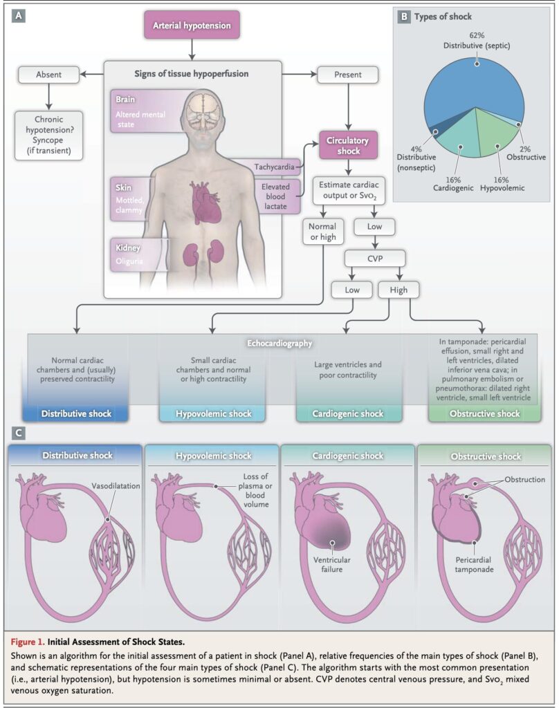 - Vincent JL, De Backer D. Circulatory shock. N Engl J Med. 2013 Oct 31;369(18):1726-34. doi: 10.1056/NEJMra1208943. PMID: 24171518.