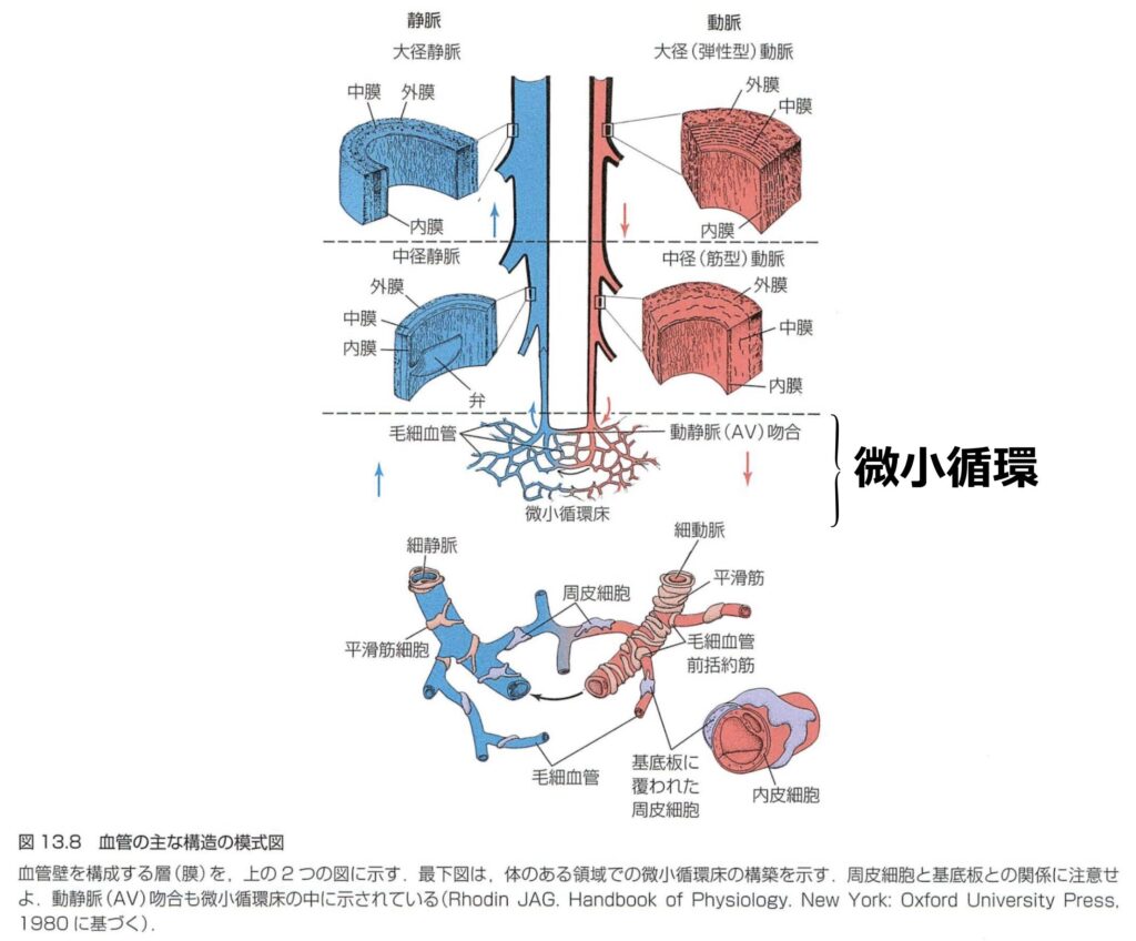 - 微小循環とは、マクロ循環(心臓および主幹動静脈)の遠位に位置する、主に直径100μm以下の細動脈(抵抗血管)、毛細血管(交換血管)、および細静脈から構成される複雑な血管ネットワークを指します。