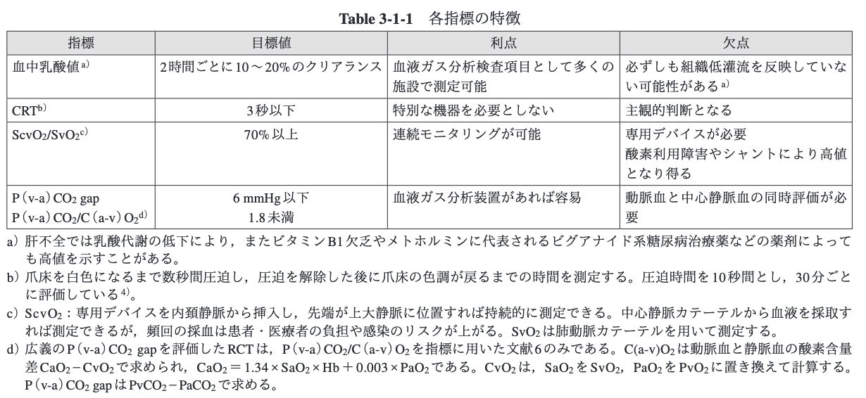 - かつてはScvO2/SvO2を指標とした初期蘇生(Early Goal-Directed Therapy: EGDT)が広く行われていましたが、近年の大規模な検証により、特別な指標を用いない蘇生と比較して死亡率や人工呼吸器装着期間を改善しなかったことが示されています。さらに、ガイドラインで行われたネットワークメタ解析の結果、血中乳酸値を指標とした管理と比較した場合、ScvO2/SvO2を指標とする管理はかえって死亡率を増加させる可能性が示唆されました。