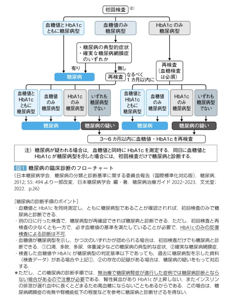 • HbA1cだけでは診断不可: HbA1cが6.5%以上であっても、血糖値による確認(同日または別の日)がなければ「糖尿病」とは診断できません。