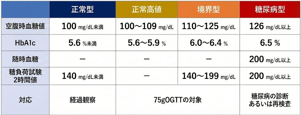◦ 再検査の結果、血糖値が糖尿病型であれば診断が確定します。