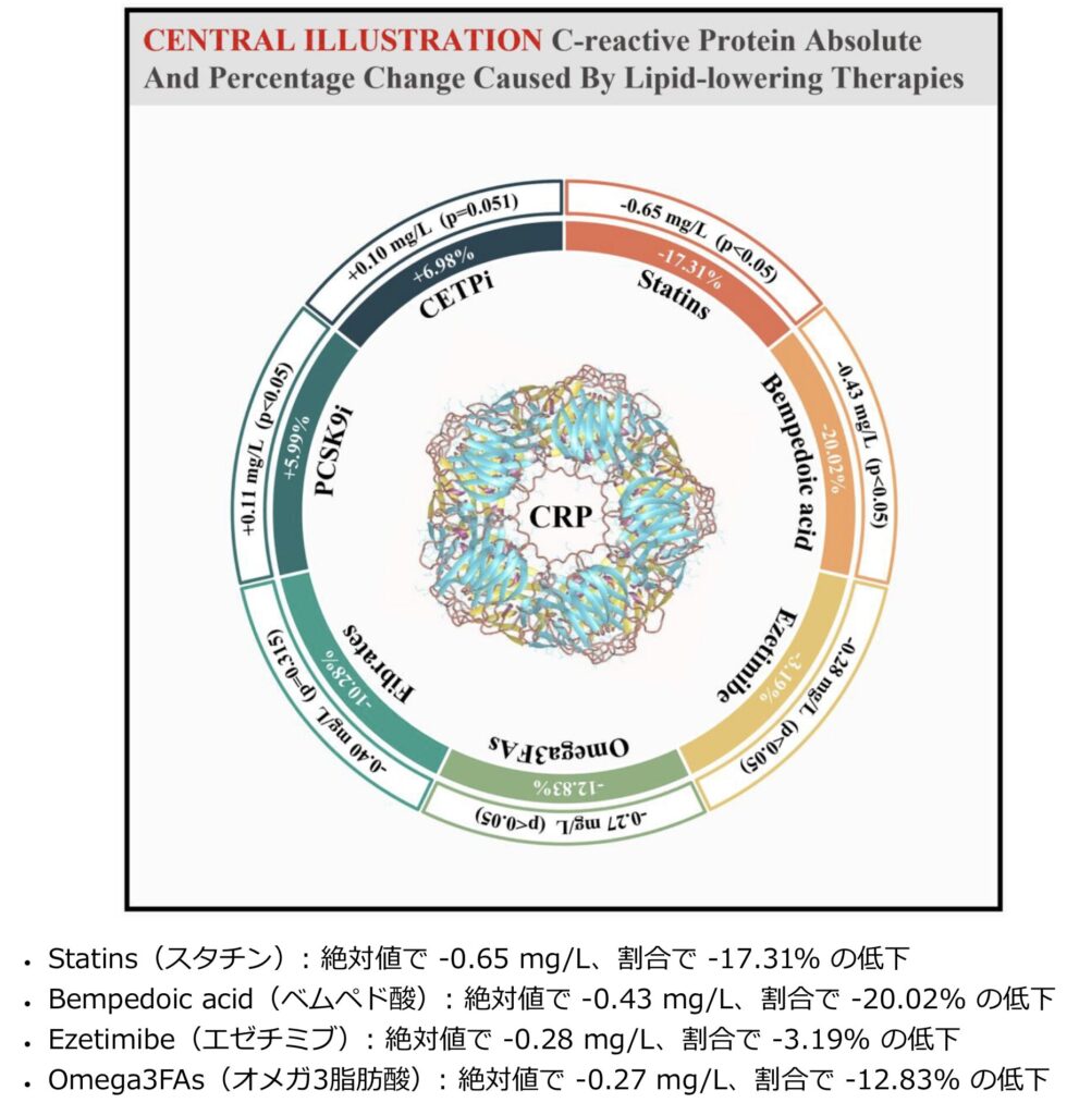 私自身、脂質異常症の治療薬がCRPを低下させる作用があることを知りませんでした。以下の論文をご紹介します。