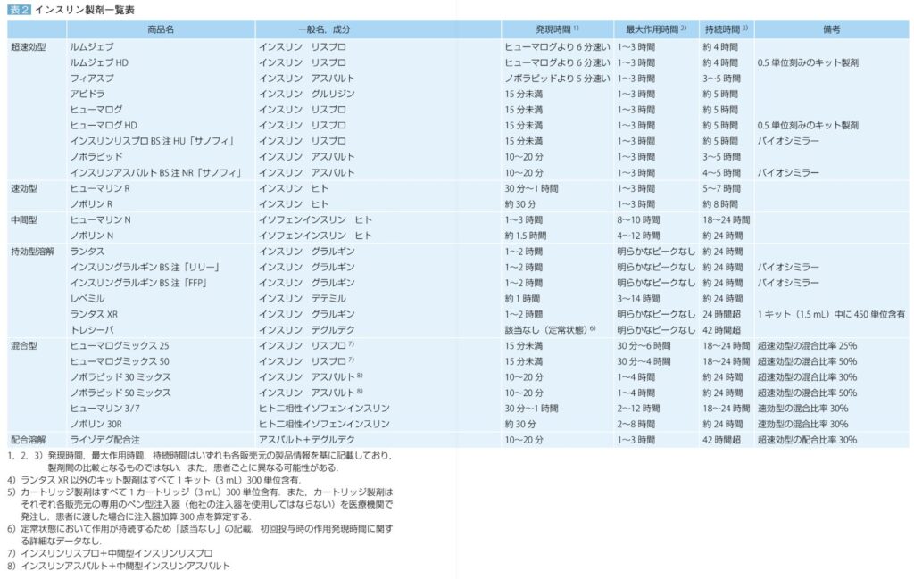 参考;インスリン製剤一覧(ここが知りたい!糖尿病診療ハンドブックVer.6より引用)