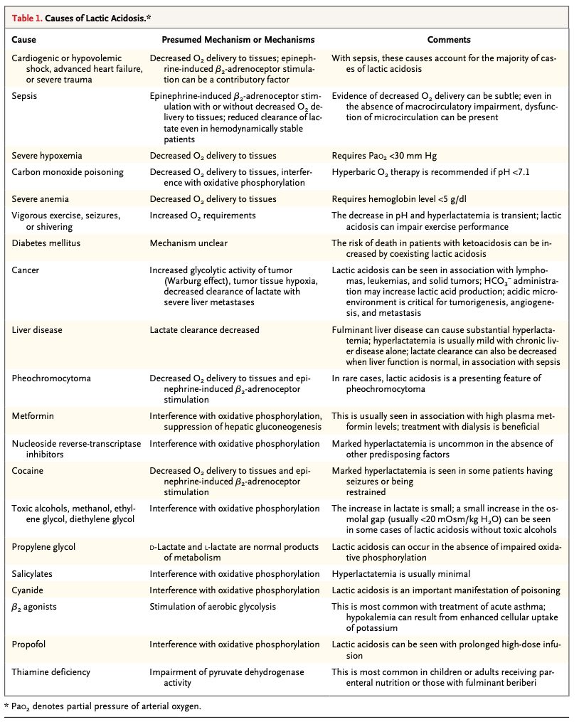 • Kraut JA, Madias NE. Lactic acidosis. N Engl J Med. 2014 Dec 11;371(24):2309-19. doi: 10.1056/NEJMra1309483. PMID: 25494270.