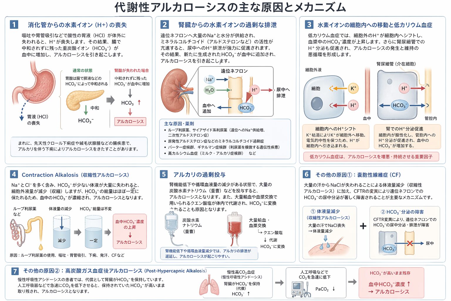 代謝性アルカローシスを発生させる主な原因とメカニズム