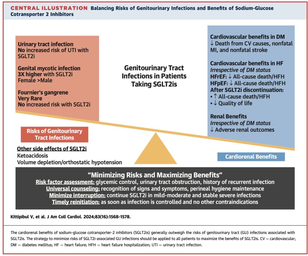 • SGLT2iは心不全(特にHFpEFを含む全域)やCKDにおいて劇的な効果を示していますが、FDAによる重症UTIやフルニエ壊疽に関する安全性情報の警告(2015年、2018年)以降、感染症リスクが不適切に過大評価されてきました。